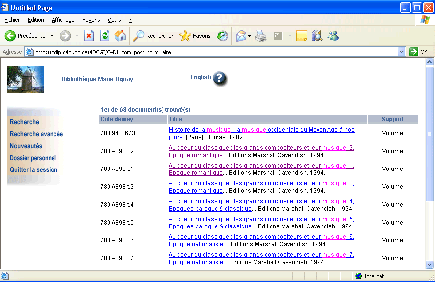 Biblionet/Quelques écrans/Publication web